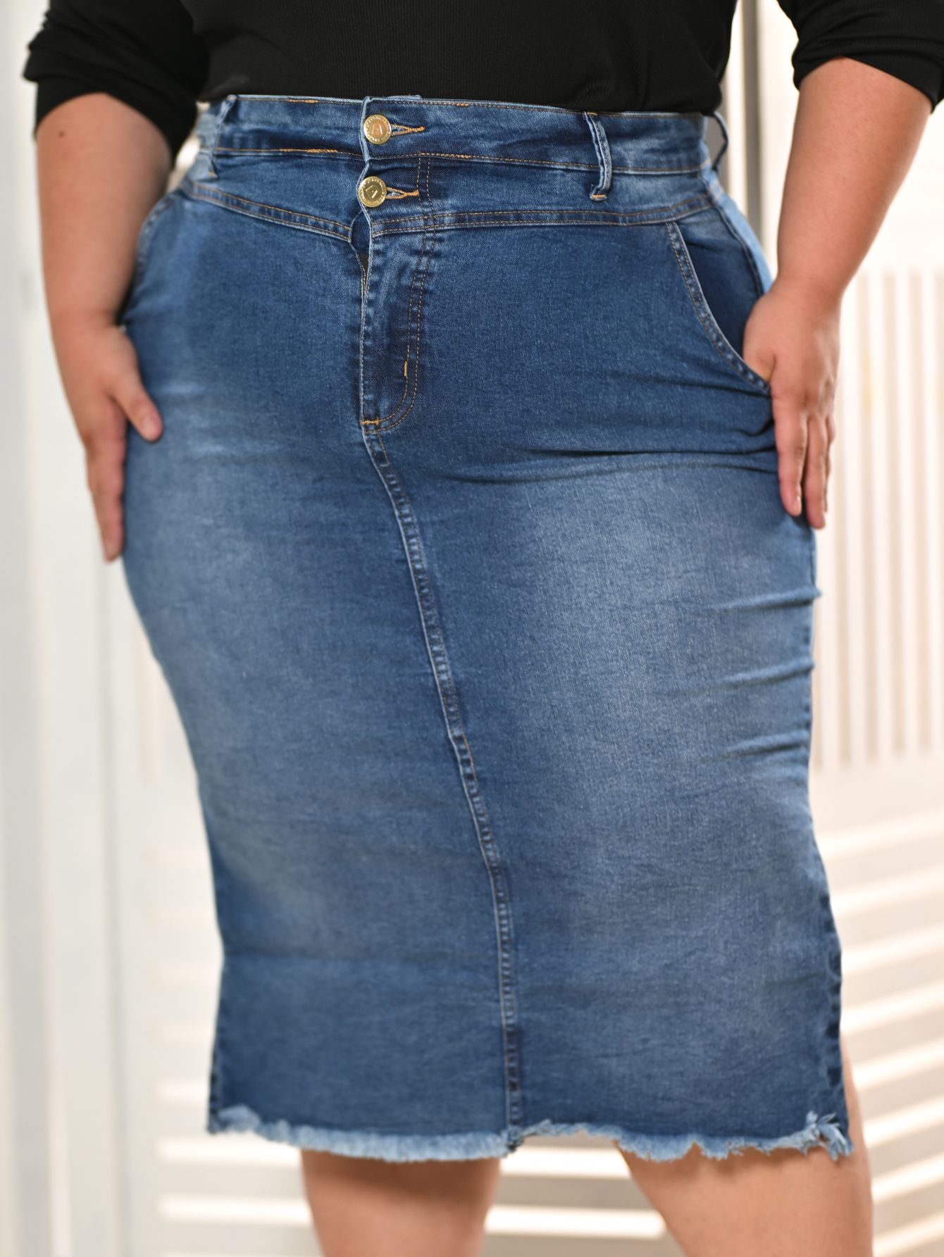 Saia Jeans Feminina Plus Size Anagrom Abertura Lateral Ref.249P