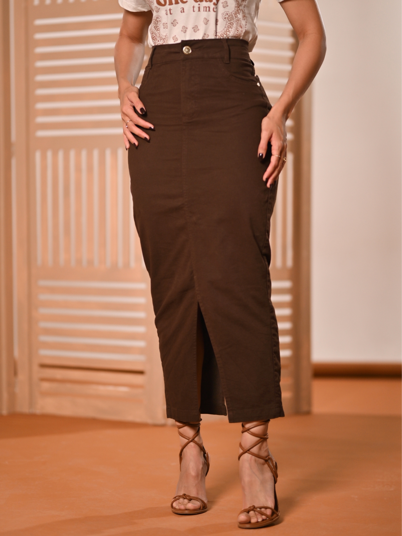 Descubra a harmonia perfeita entre conforto e estilo com a Saia Longa Marrom Brim Anagrom Ref.258. Confeccionada em brim de alta qualidade, esta peça proporciona um caimento impecável, ideal para compor looks discretos e sofisticados. Seu tom bordô permite diversas combinações, tornando-se uma opção versátil para o cotidiano e ocasiões especiais.